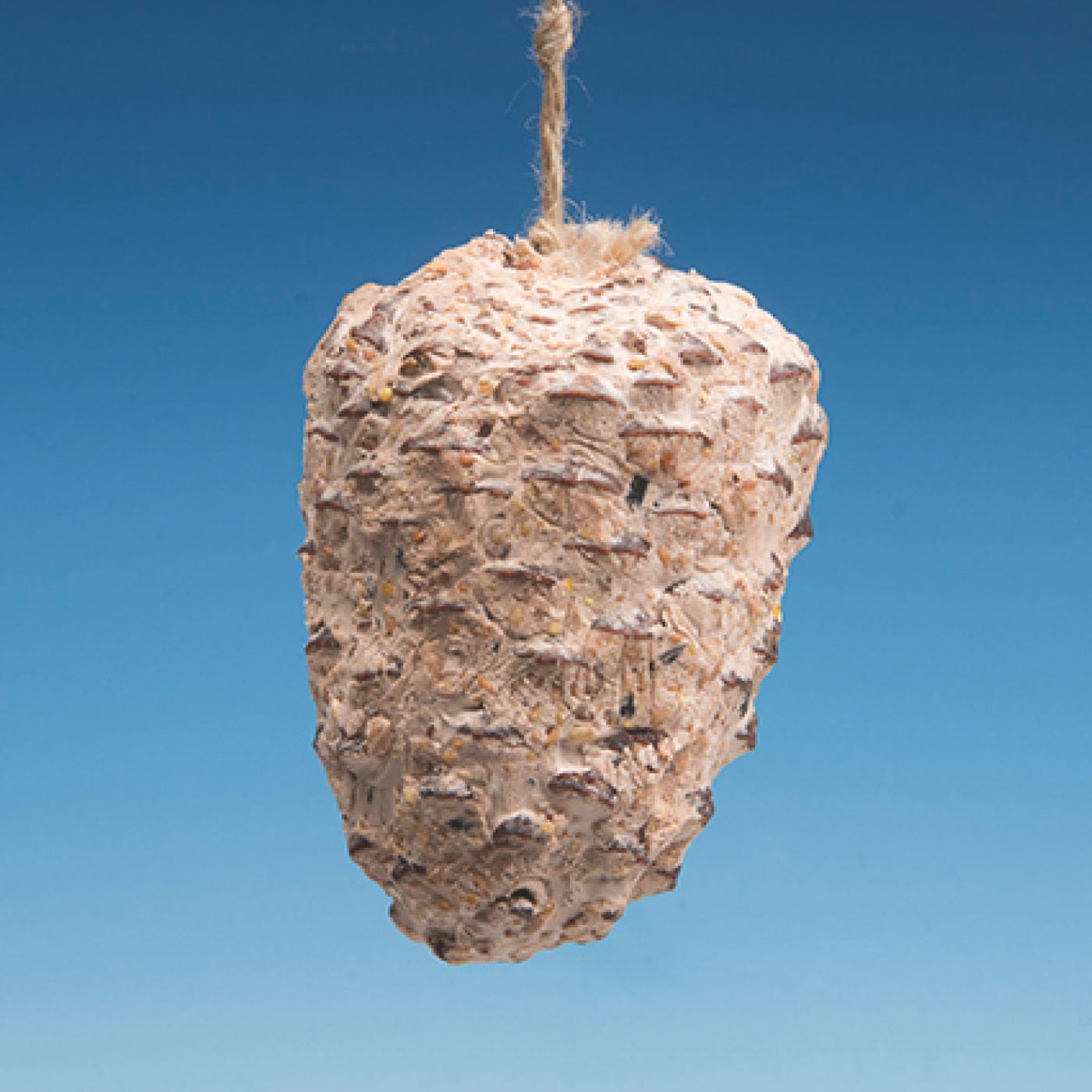 100% nature product, where the pine cone is filled with suet, oil-containing seeds, corn and peanut butter. With this product you will be using food of a correct nutritional composition, resulting in the wild birds thriving splendidly in your garden.